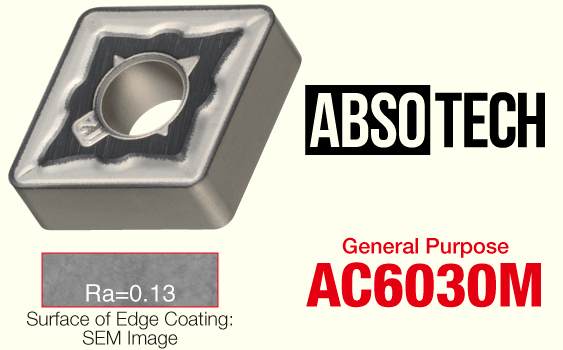 Grado para el corte interrumpido de acero inoxidable, mediante el nuevo recubrimiento PVD «Absotech®», una estructura de múltiples capas de TiAlSiN recién optimizada y un sustrato exclusivo de carburo con alta resistencia al desprendimiento y astillado mejora enormemente la estabilidad de la vida útil de la herramienta incluso en cortes inestables.