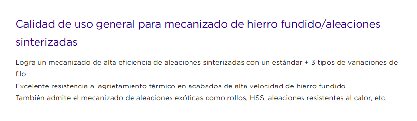 Excelente estabilidad en el mecanizado de alta velocidad de hierro fundido y aleaciones sinterizadas