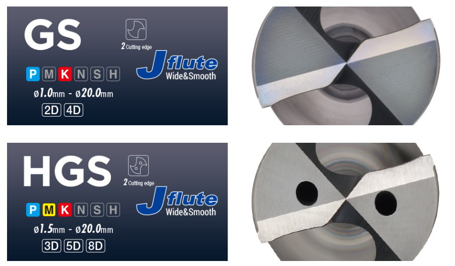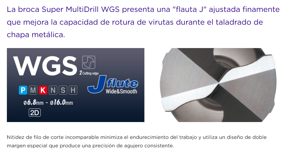 El diseño de «flauta J» ofrece un amplio bolsillo de virutas, produciendo virutas más compactas mientras se alcanzan velocidades más altas.