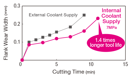 ● Suprime el desgaste del flanco con suministro adicional de refrigerante a la cara del flanco.