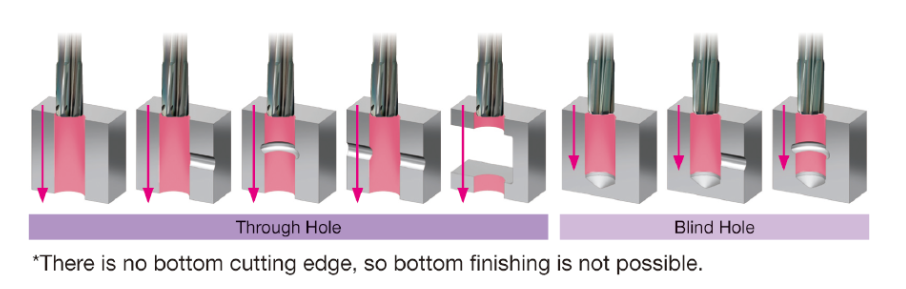 Excelente calidad del filo de corte libre de microfisuración que logra una buena calidad de superficie del agujero.