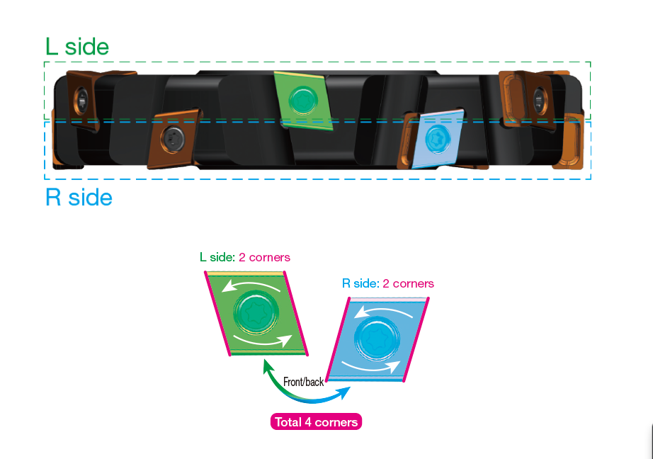 Gestión fácil con un diseño de inserto neutro que elimina la necesidad de alinear insertos de mano derecha e izquierda.